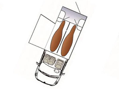 Tutti gli equipaggiamenti interni di DURAS possono essere smontati in pochi minuti senza bisogno di strumenti : dopo aver tolto il divisorio, il bagagliaio e la griglia, si dispone di un volume utile di 13 m3.