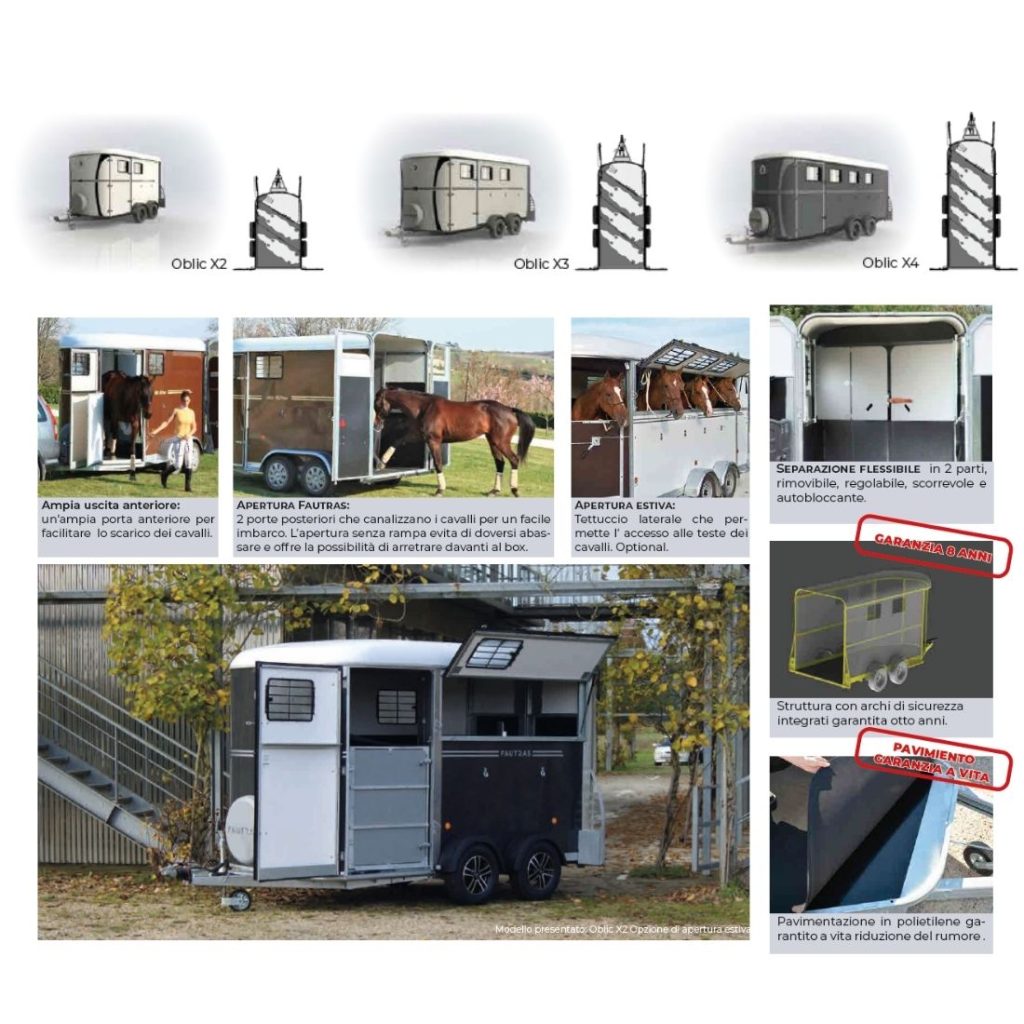 Disponibile nelle versioni a 2, 3 o 4 posti, il nuovo van con carico diagonale assicura un’uscita anteriore più larga, che facilita lo sbarco e accresce la sicurezza del cavallo e del cavaliere.